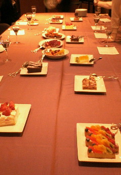 ↓デザート二十種類くらいの図。長机を縦撮り。